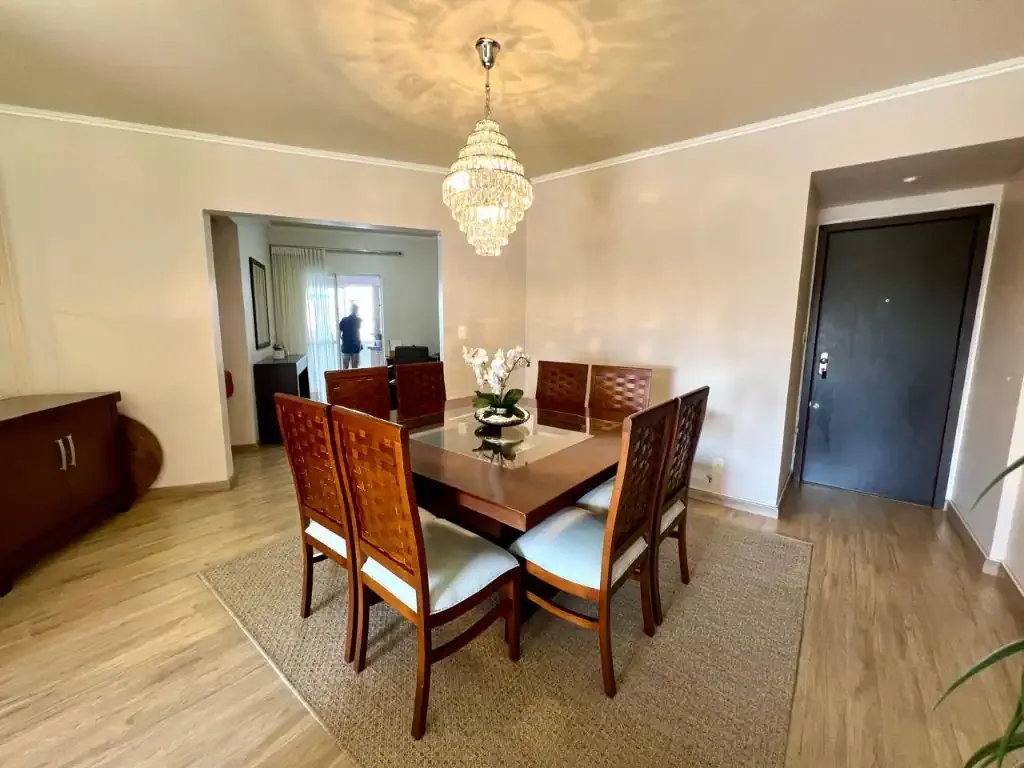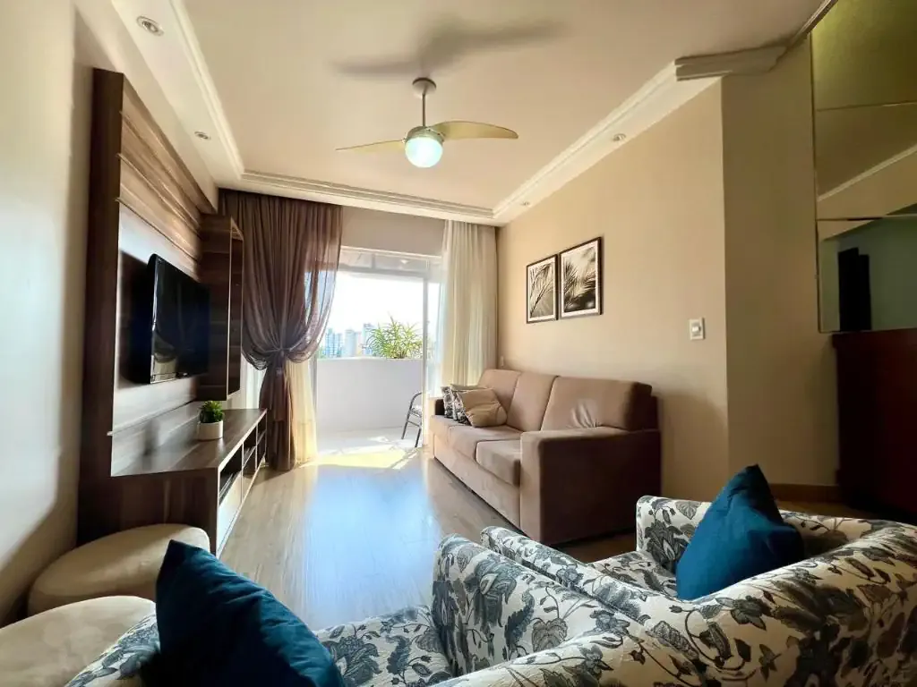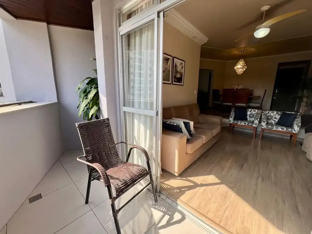 O imóvel possui 3 dormitórios sendo 1 suíte, mais 2 dormitórios, cozinha, área de serviço, sala ampla em dois níveis, banheiros, duas sacadas uma com churrasqueira interna a carvão. Permanecem móveis planejados na cozinha, banheiros e quartos.